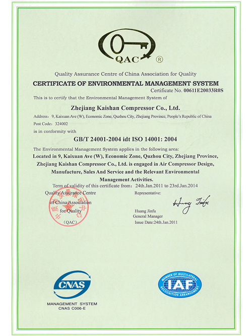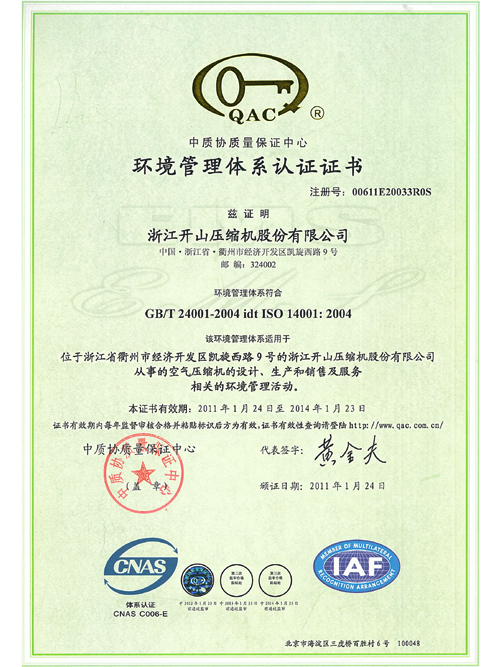 环境管理体系认证证书
