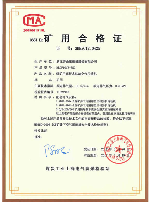 矿用合格证