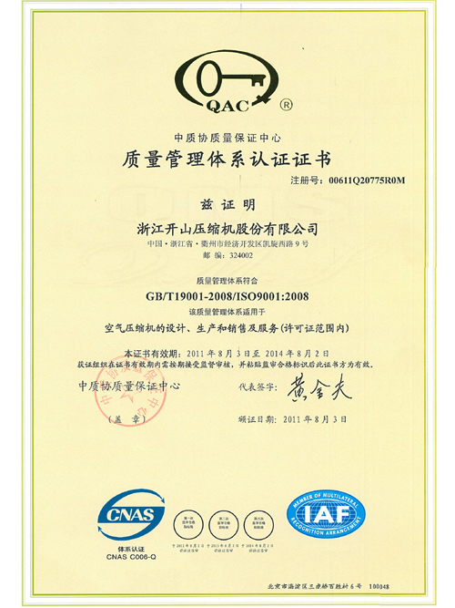 质量管理体系认证证书